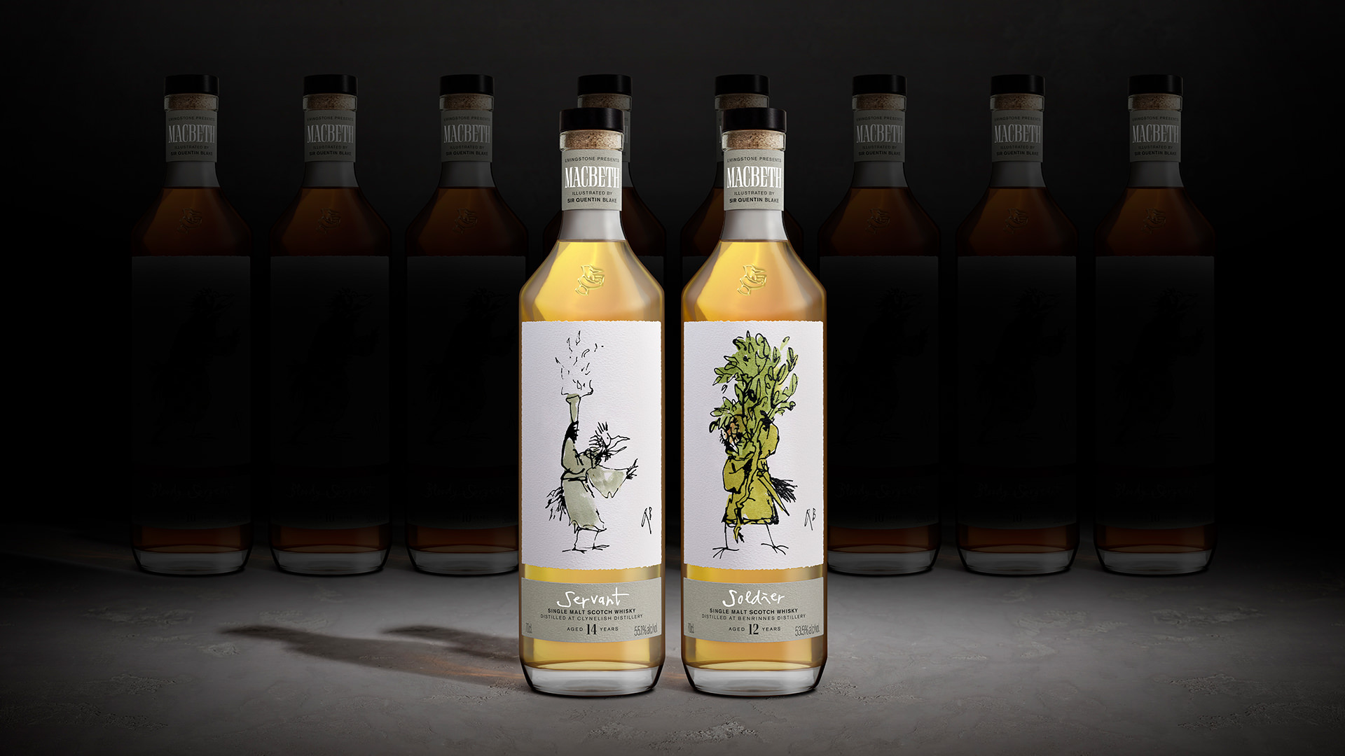 The Macbeth Collection is a Scotch whisky collection of forty-two characters of Shakespeare’s Macbeth, with character notes by Dave Broom, whiskies by Elixir Distillers and illustrations by Sir Quentin Blake. All forty-two characters are split into six character series. Please find more information about the previous Act here.